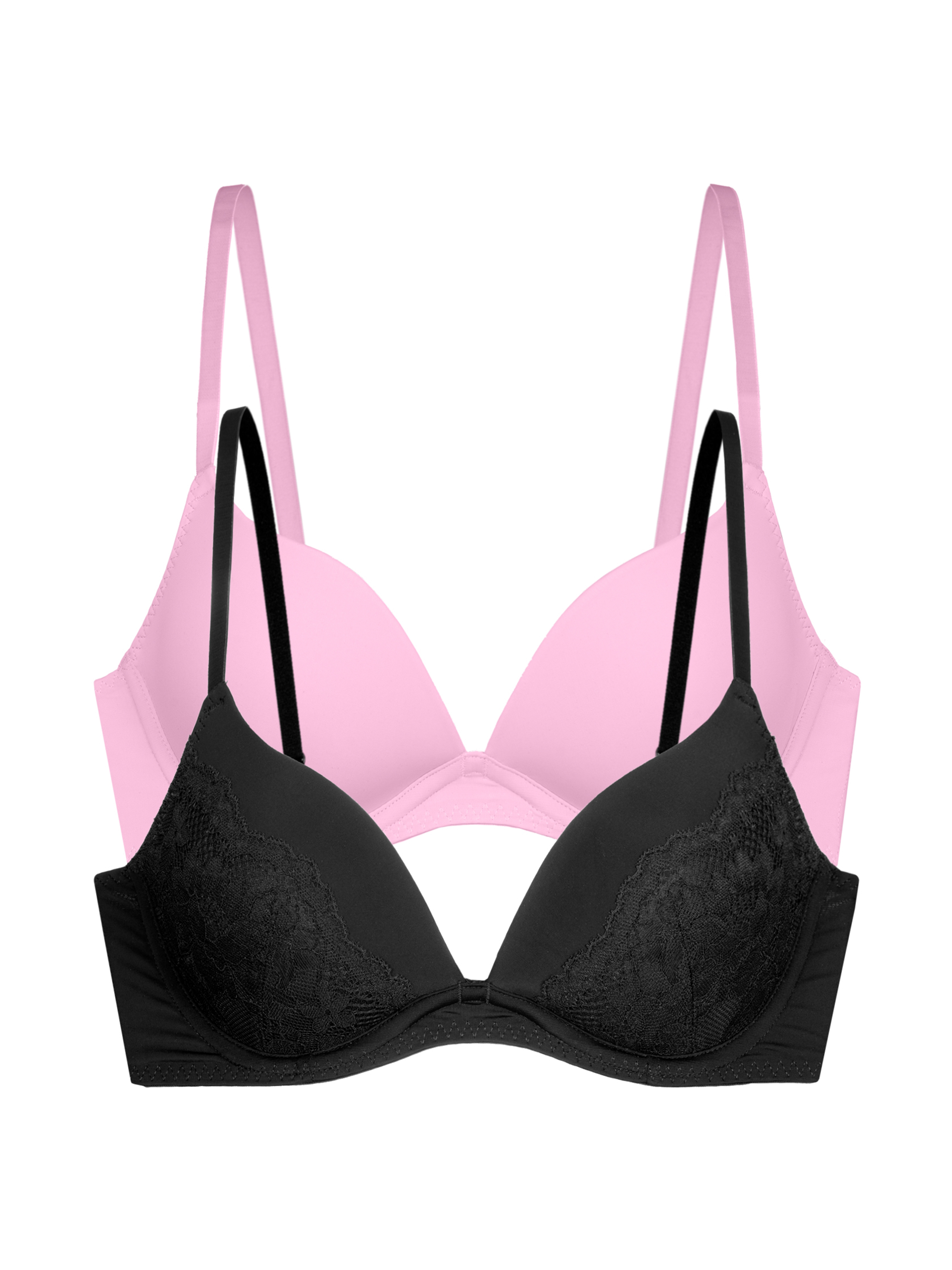 Dorina WILLA Push-Up Plunge BH 2er Pack – Schwarz/Pink